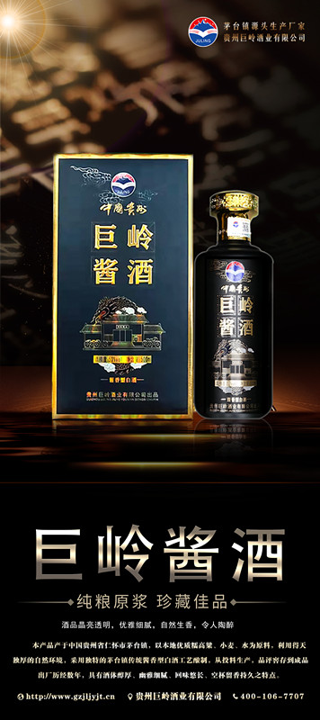 貴州巨嶺酒業有限公司,座落于聞名世界的古鎮,國酒之鄉“茅臺鎮”。與“國酒茅臺”共享得天獨厚的氣候、土壤、水源、以及微生物群等自然資源;《巨嶺酒業》老作坊前身“巨嶺燒坊”,經過多年的傳承,秉承先輩們代代相傳的古法釀造工藝,歷經幾代人的延續和釀酒發展,奠定了《巨嶺酒業》發展的堅實基礎。貴州巨嶺酒業有限公司,座落于聞名世界的古鎮,醬酒之鄉“茅臺鎮”。與“貴州茅臺酒”共享得天獨厚的氣候、土壤、水源、以及微生物群等自然資源;《巨嶺酒業》老作坊前身“巨嶺燒坊”,經過多年的傳承,秉承先輩們代代相傳的古法釀造工藝,歷經幾代人的延續和釀酒發展,奠定了《巨嶺酒業》發展的堅實基礎。